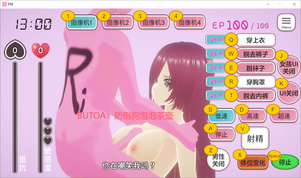 玩家可以用滑鼠或键盘操作角色在场景中自由移动,使用超自然力量,使用停止时间、放置陷阱、全员高潮等技能。