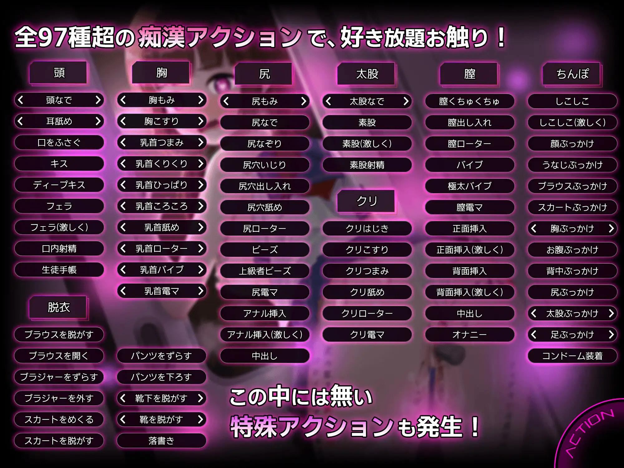 广泛自由地享受骚扰乐趣!还会触发本作独有的「特殊动作」!