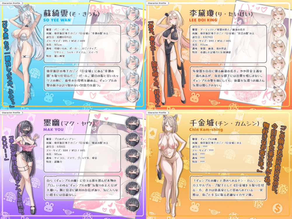 一款赌博类型的SLG动态游戏~趁着更新把全CG存档也放进去了~感兴趣的小伙伴自行体验吧~