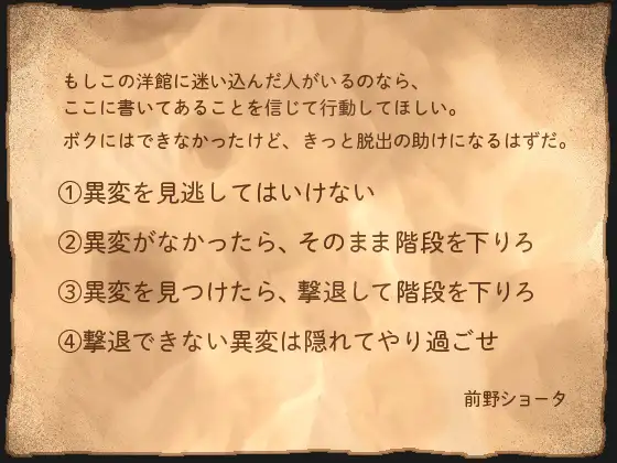 在没有道路的森林中拼命奔跑着,仿佛在等待着我一般,森林深处出现了一座洋馆。