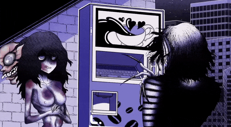 她对你给予之物的反应各不相同:时而微笑,时而蹙眉,时而消失——再归来时已悄然改变。有时她一去不返。若你选择自饮,机器便会转而对你产生反应。别指望公平交易。