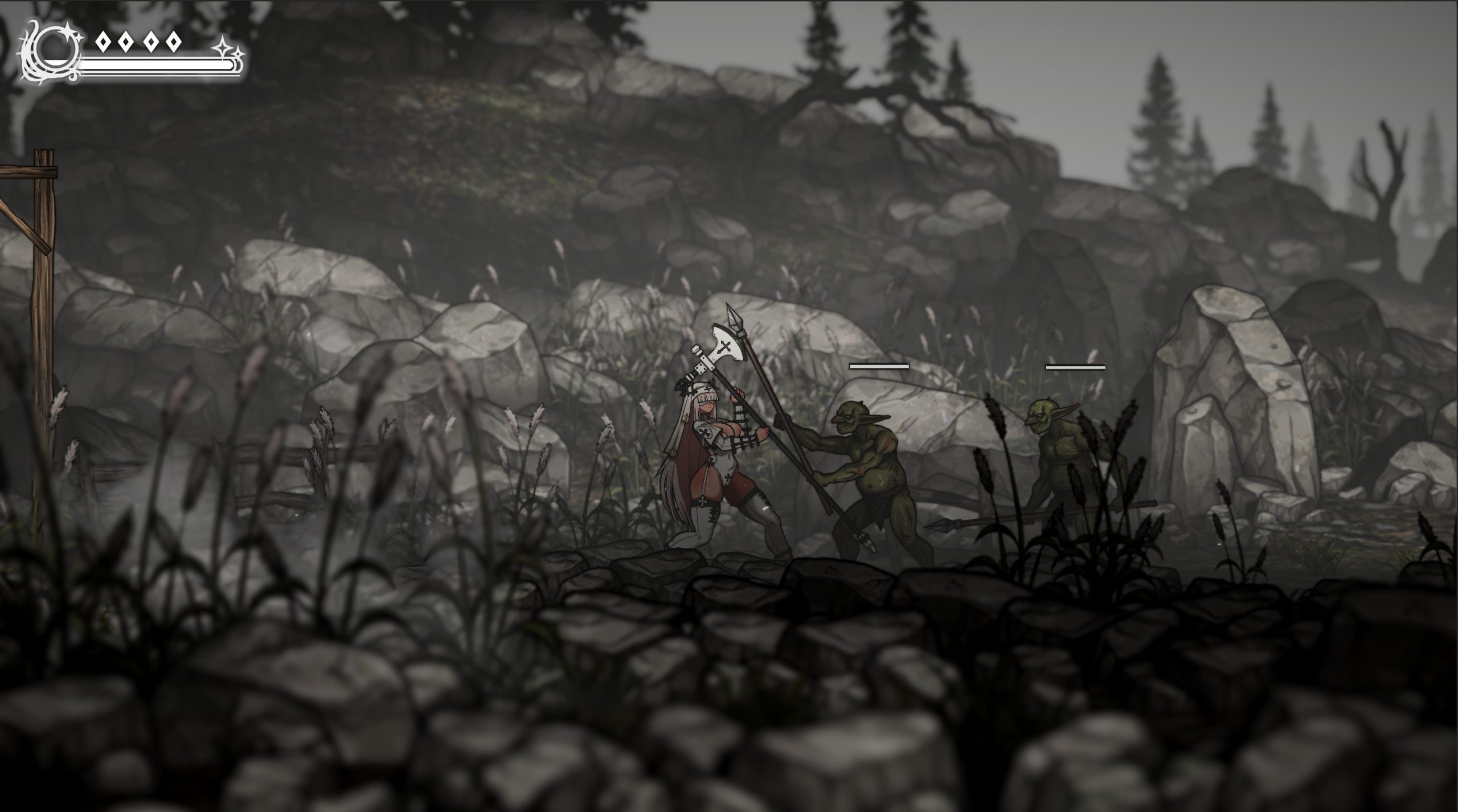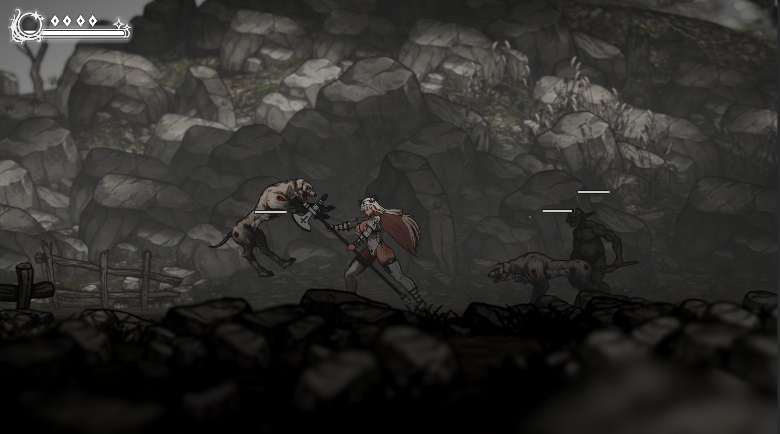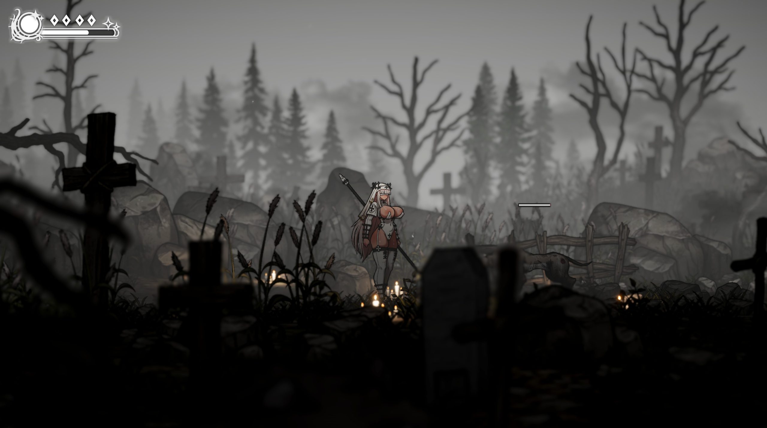 Apostate Verity是一款面向成人的2D横版动作游戏。玩家将扮演一名叫做Verity的战斗修女在充满瘟疫侵袭和布满恐怖魔物的黑暗世界中冒险,逐步贯彻Verity所坚信的信仰。这其中玩家将会体验到既需要技巧也需要高度反应能力的紧张刺激的高难度战斗。