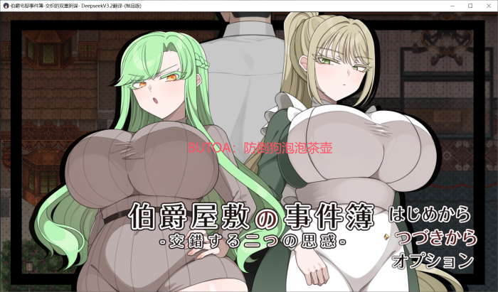 免责说明 本文由butoa原创,游戏资源转载自网络,DeepseekV3.2翻译和封包由butoa独立完成,请于下载后24时内删除。 作品介绍 社团名よっぷ发售日2026年04月28日 0时系列名事件簿シリーズ声优御子柴泉年龄指定R18作品形式角色扮演有配音有音乐文件形式软件支持的语言日语分类断面图 警察/刑警 同学/同事 被NTR(苦主视角) 淫乱 哦吼淫叫 命令/强迫 男娘文件容量1000.92MB 伦敦刑警主角(玩家)接到了一桩新案件。据说名门希尔顿家的家主希尔顿伯爵收到了”将要盗取宝石”的预告信。主角将与同僚梅洛德巡警一同前往宅邸巡查。然而在那里,各种算计与情欲正暗流涌动……… ◇女主角介绍 ◇游戏系统 通过在希尔顿家领地内巡逻提升”巡查率”来推进剧情。当领地内触发色情事件时”巡查率”会上升,达到一定数值即可结束当日行动。虽然与男性NPC的互动占比较多,但也会发生与主角的亲密剧情。结束当日工作后,夜间可选择前往其中一位女主角的住处。届时会发生什么敬请期待! 部分事件仅在梅洛德穿着特定服装时才会触发,请仔细探索领地每个角落!——————————–◇其他设定说明可自定义主角姓名。除部分结局外,根据各女主角”好感度”分歧的多结局制(共5种)※满足特定条件时,会触发梅洛德选择男性NPC的NTR结局。与前作《禁欲村事件簿-被盯上的搭档肉体-》存在关联,但本作可单独体验。预计游戏时长:约2小时基础色情CG:40张(梅洛德与艾莉3:1比例)——————————————-本作使用RPG制作大师MV开发。购买前请务必通过试玩版确认运行环境。※试玩版存档无法继承至正式版,请注意。 游戏截图 下载链接 已放入全CG存档~感兴趣的小伙伴,自行体验吧~ DMM 链接 文件序列:G260499游戏名:伯爵屋敷の事件簿 -交錯する二つの思惑-译名:伯爵宅邸事件簿-交织的双重阴谋-文件大小:1.81 GB上传时间:2026年04月28日 (以后在我文章下面比较好的留言,比如游戏攻略或者存档,汉化BUG汇报,游戏感想等等~会不定期送点小福利,记得留意私信哈~~) ENC文件解密程序文件需要以下程序进行第一次解密ENC解密程序下载:https://pan.baidu.com/s/1a4nNQXvtrXJVZHRffH_CkA?pwd=109j密码:acgbuster 您需登录并关注本文作者后才能阅读此隐藏内容请先登录登录立刻注册